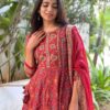 Anarkali Suit Set Women Kurta Set with Dupatta Women’s Embroidery Designer Cotton Anarkali Kurta Pant Dupatta Suit Size-M