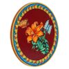 This vibrant pichwai painting features a red plate overflowing with a colorful flower and a delicate butterfly. The intricate details and rich colors make this a stunning piece of art that would be a perfect addition to any home.