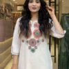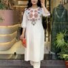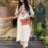 Women’s Pure Cotton Embroidery Co-Ord Set | White Floral Coo-rd Set for Women | Cotton Kurti Pants Set Size -M