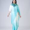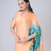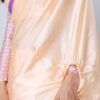 Women’s Modern Dual-Tone Peach & Off-White Satin Silk Kaftan Saree with Digital Print Neck Design